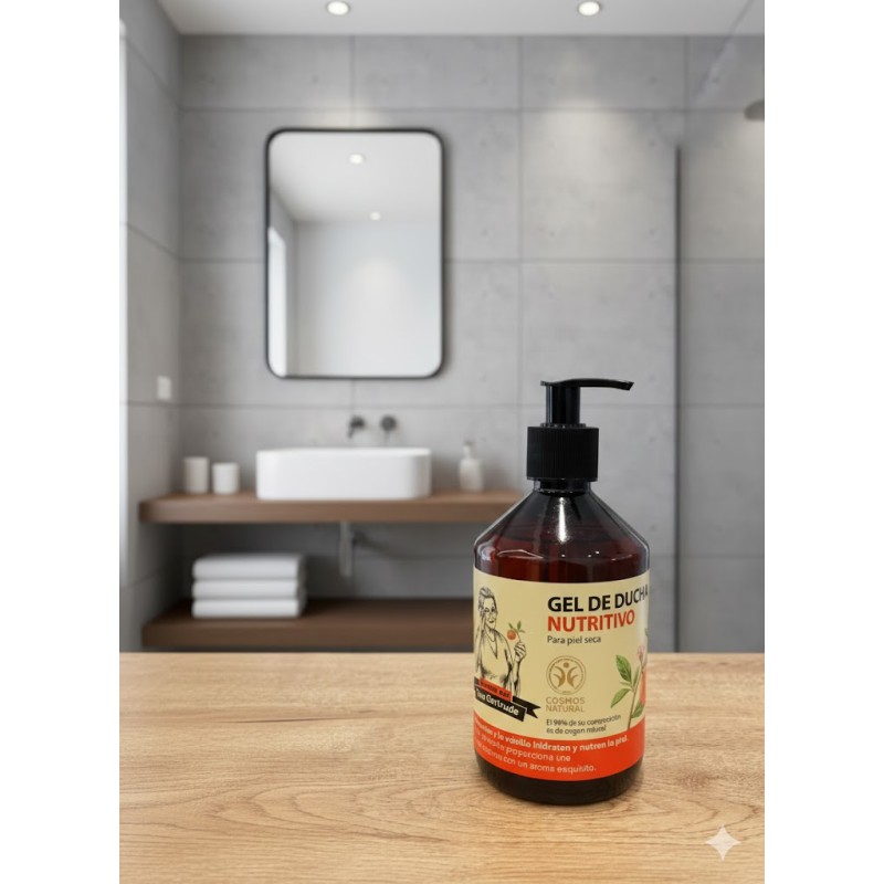 SI TU PIEL NECESITA UN CUIDADO EXTRA Y NUTRICIÓN INTENSIVA, ESTE ES TU GEL. EL GEL DE DUCHA NUTRITIVO OMA GERTRUDE DE 500ML ESTÁ CREADO PARA PIELES SECAS Y EXIGENTES, COMBINANDO UNA LIMPIEZA DELICADA CON LOS BENEFICIOS DE INGREDIENTES ALTAMENTE NUTRITIVOS, COMO ACEITES VEGETALES RICOS (COMO EL AGUACATE O EL KARITÉ).