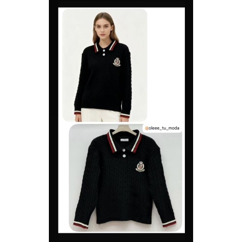 Jersey Ariana con cuello tipo polo y botones 52% acrílico ,26% nylon, 22% poliéster